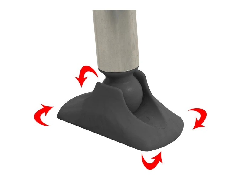 Aluminium frame en aluminium tafelrand, met stabilisatievoetjes.