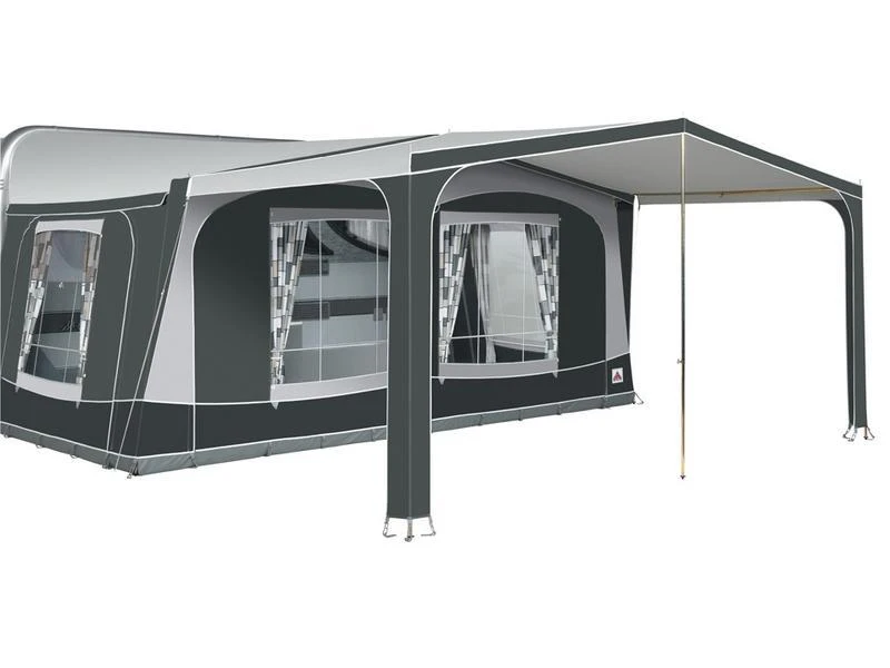 De voortentluifel Palma past aan bijna alle Doréma voortenten en Multi Nova’s vanaf modeljaar 2007. De Palma wordt door middel van een kunststof koppelprofiel aan de petluifel van de voortent bevestigd. Een losse zijwand, zowel links als rechts te gebruiken, is optioneel leverbaar. Deze luifel is geheel gemaakt van het sterke Ten Cate All Season tentdoek. Zoekt u een voortentluifel voor een Doréma voortent van voorgaande jaren of voor een ander merk voortent, kies dan één van onze modellen Pagode of Locarno.