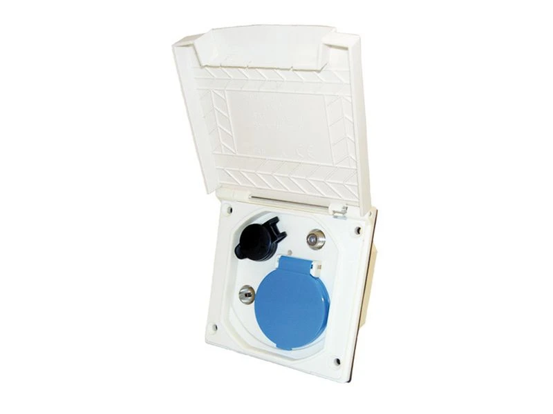 wit, met kabel 1mtr, met standaard deksel, 230 Volt + 12 Volt + Antenne + Satellite, 100x100mm